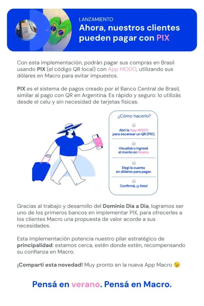 Banco Macro anuncia una solución práctica y segura para los clientes que elijan Brasil como destino de sus vacaciones durante el verano 2026.