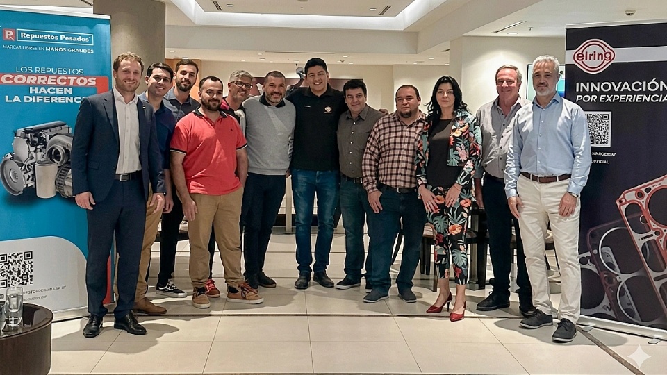 - Jornada de Capacitación Técnica: El pasado lunes 13 de abril, la sede central de Repuestos Pesados fue epicentro de un exclusivo desayuno de trabajo. Directivos y especialistas de Elring brindaron una capacitación de alto nivel, compartiendo innovaciones tecnológicas, desarrollos actuales y mejores prácticas de instalación, permitiendo a los clientes estratégicos anticiparse a los desafíos del motor moderno.