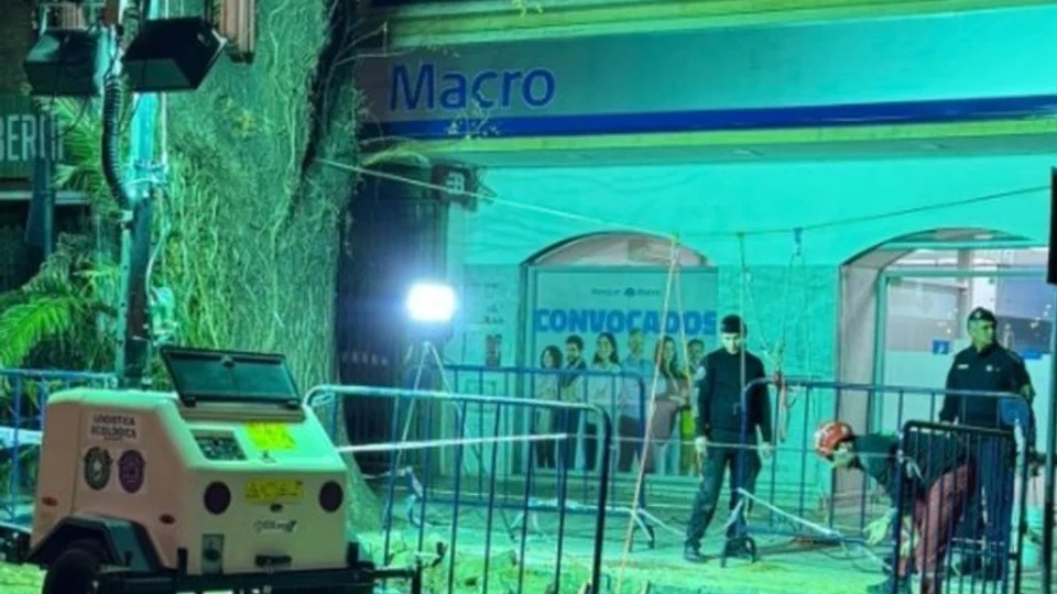 En tanto, un analista técnico acudió a la sucursal bancaria para evaluar si las alarmas del edificio estaban en funcionamiento y, tras confirmar que todas estaban activadas, los efectivos policiales extrajeron la varilla metálica y descubrieron que no era la única que se encontraba enterrada en el lugar.