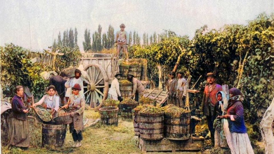 El montaje propone un viaje en el tiempo hasta llegar a los registros más antiguos de cosechas en Mendoza.