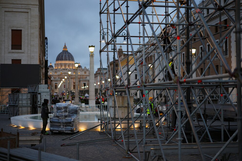 Via della Conciliazione prepara las pantallas gigantes donde se retransmitirá el funeral de Francisco