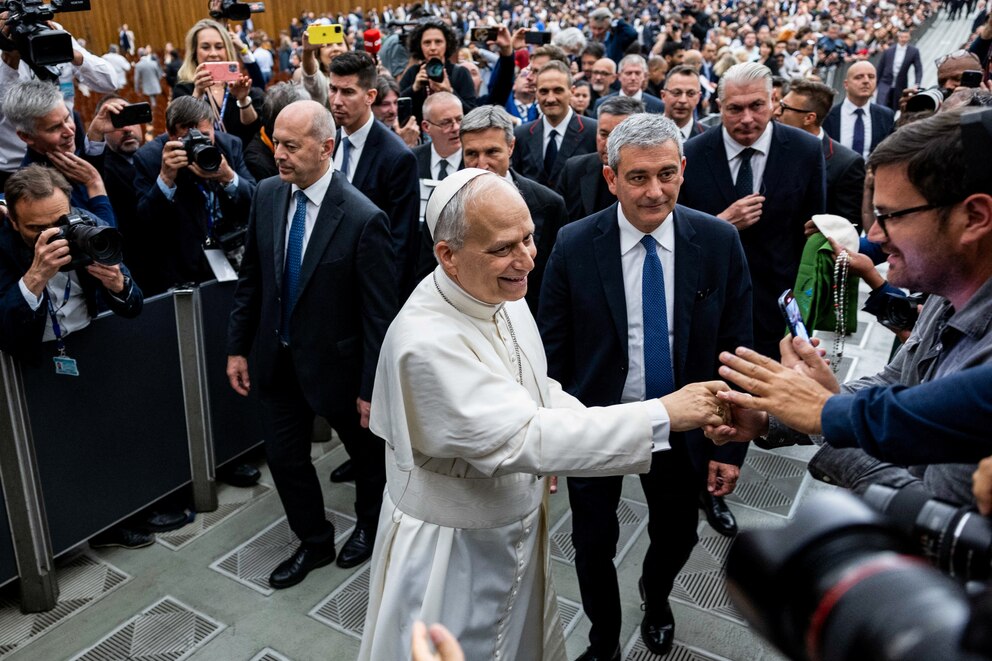 El pontífice reunió, como hizo Francisco al inicio de su pontificado, a varios miles de periodistas que informaron sobre el cónclave en el que los cardenales le eligieron el pasado 8 de mayo, y tras su discurso bajó a saludar a algunos de ellos para conocerlos, además de comentar también su pasión por el tenis.