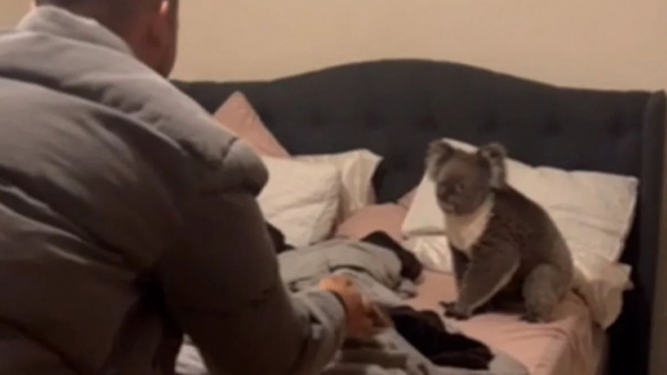 El video muestra al koala sentado en el piso junto a su cama, mirando a Rufino y a su esposo, Brunno, antes de subirse a una mesa de noche. Luego saltó a la cama, según los clips que Rufino compartió con CNN.