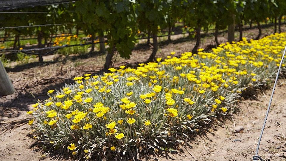 Cobertura Vegetal. Bandas Florales en el Interfilar del Viñedo Orgánico, el objetivo de esta investigación es aumentar la biodiversidad y mejorar la salud del suelo.