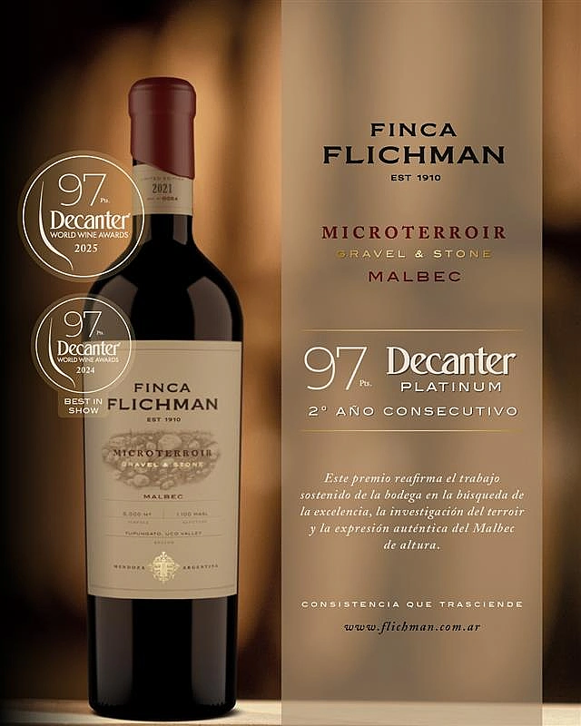 Su Microterroir Gravel & Stone Malbec 2021 ha sido distinguido con 97 puntos y medalla Platinum en los Decanter World Wine Awards 2025, alcanzando este prestigioso reconocimiento por segundo año consecutivo.